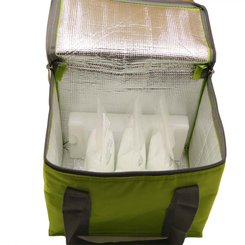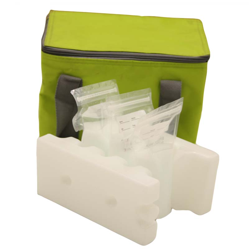 Place frozen ice pack in a cooler bag together with milk bottles